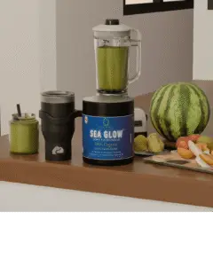 - The next morning blend together the frozen banana, mango, kiwi, Organic Sea Glow Powder and milk until a thick consistency forms. You can add a dash more plant-based milk to make it simpler to blend.Â