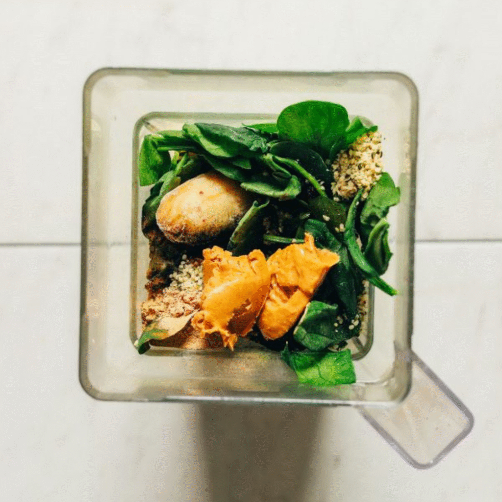 • Taste flavor and adjust if desired, adding more peanut butter for saltiness or banana for sweetness. Spirulina or more spinach will add a deeper green hue.