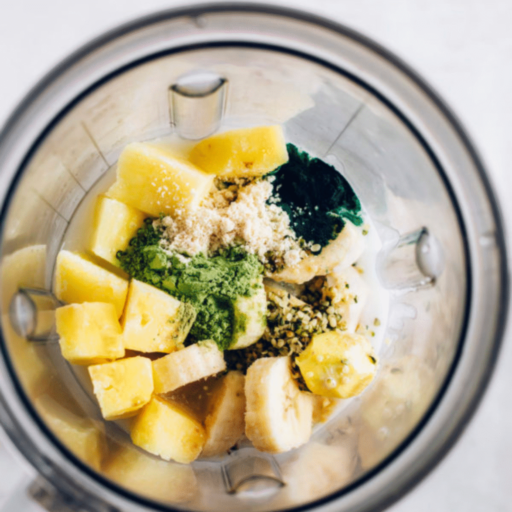 - Taste and adjust flavors as needed, adding more coconut milk for creaminess, pineapple or banana to thicken, lime or lemon for tartness, or ginger for zing.